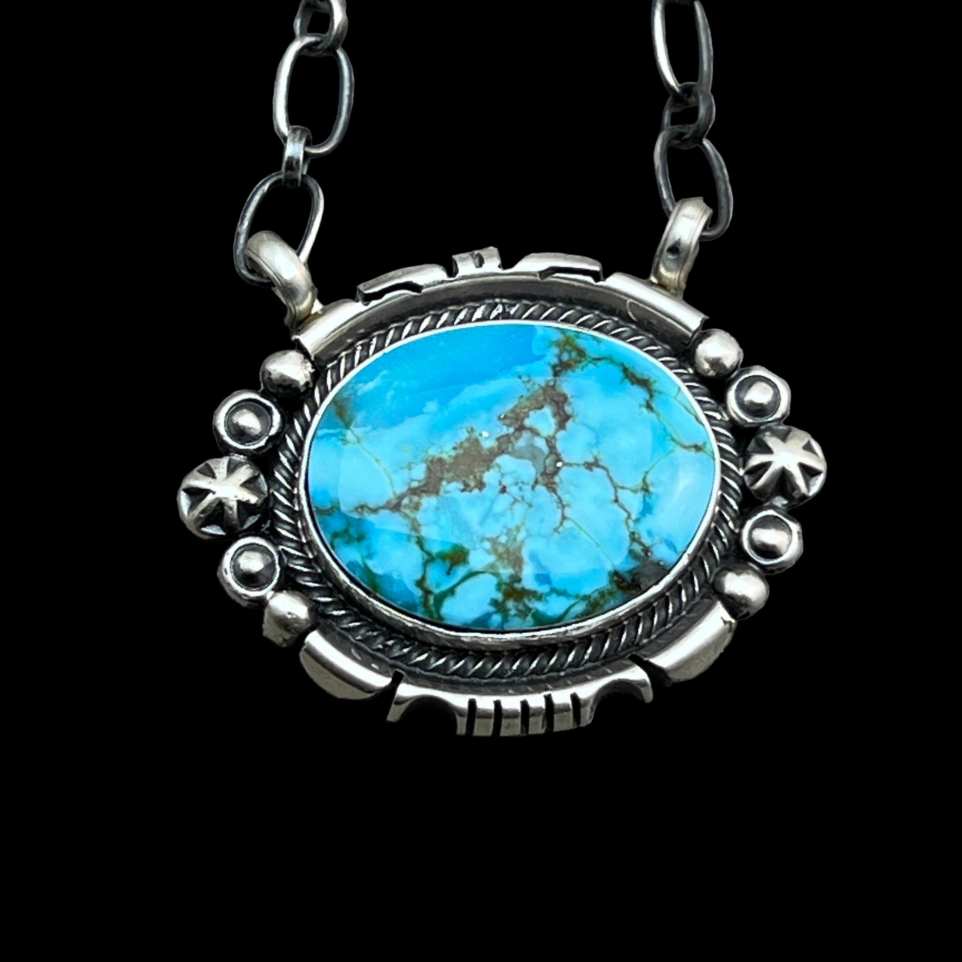 18" Kingman Spiderweb Turquoise Necklace Sterling silver Navajo Daniel Benally 590