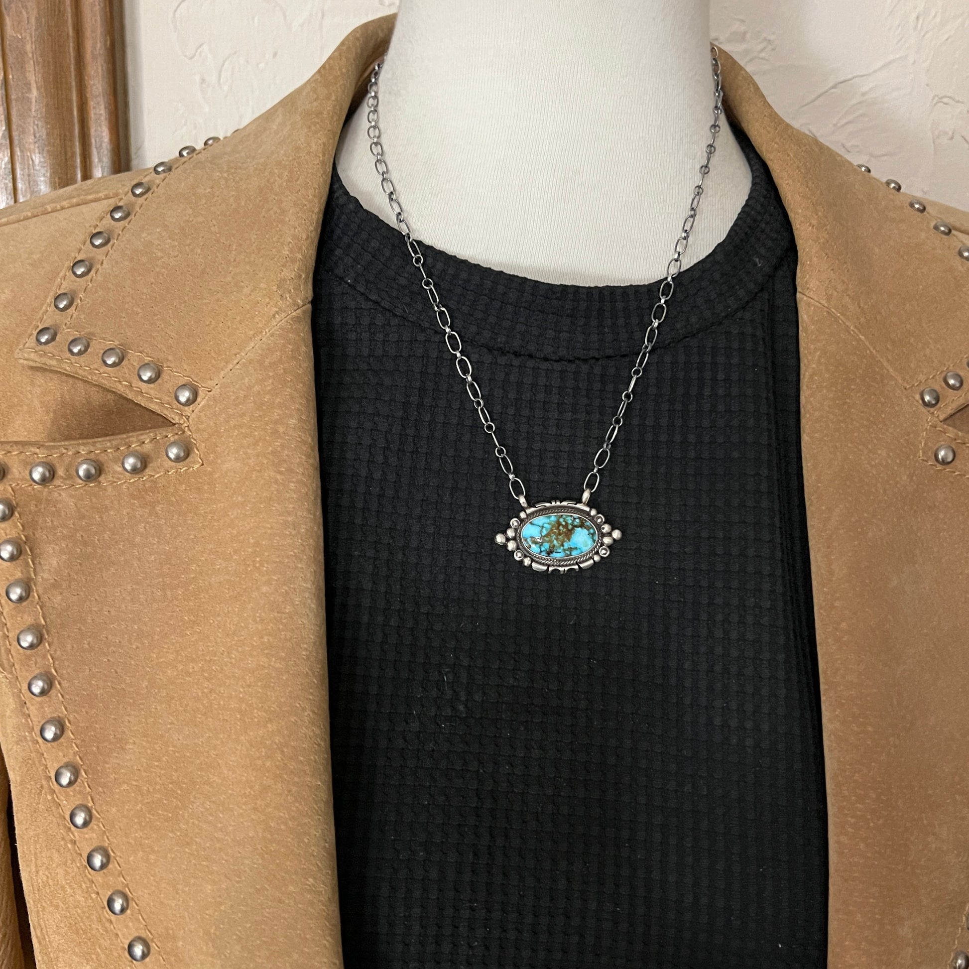 18" Kingman Spiderweb Turquoise Necklace Sterling silver Navajo Daniel Benally 595