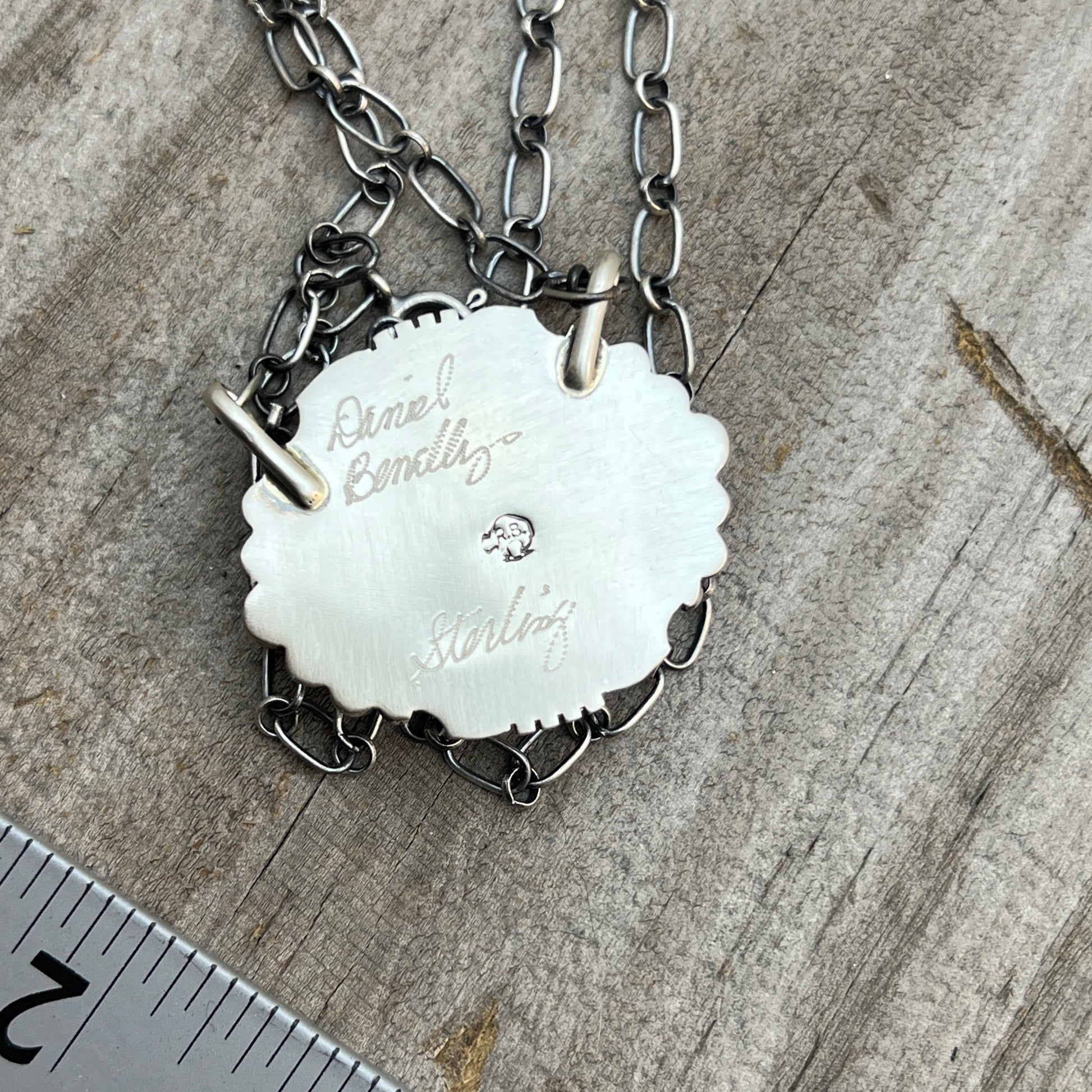 18" Kingman Spiderweb Turquoise Necklace Sterling silver Navajo Daniel Benally 606