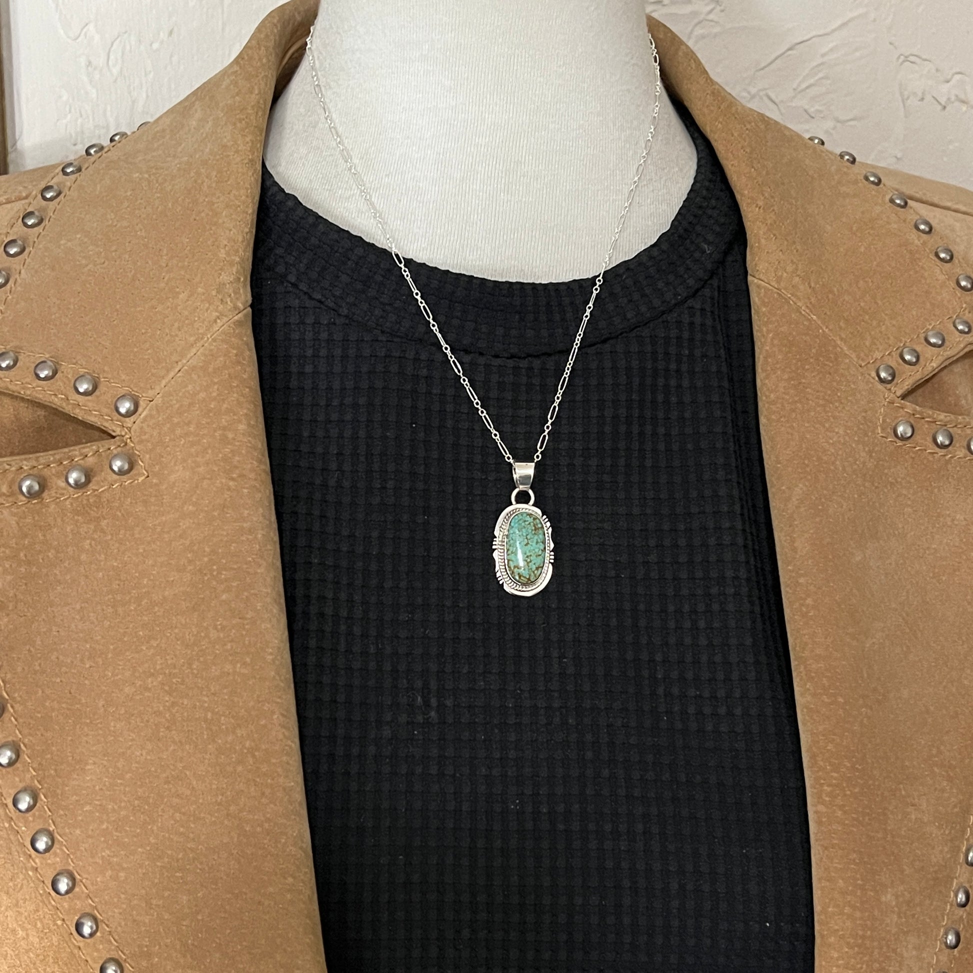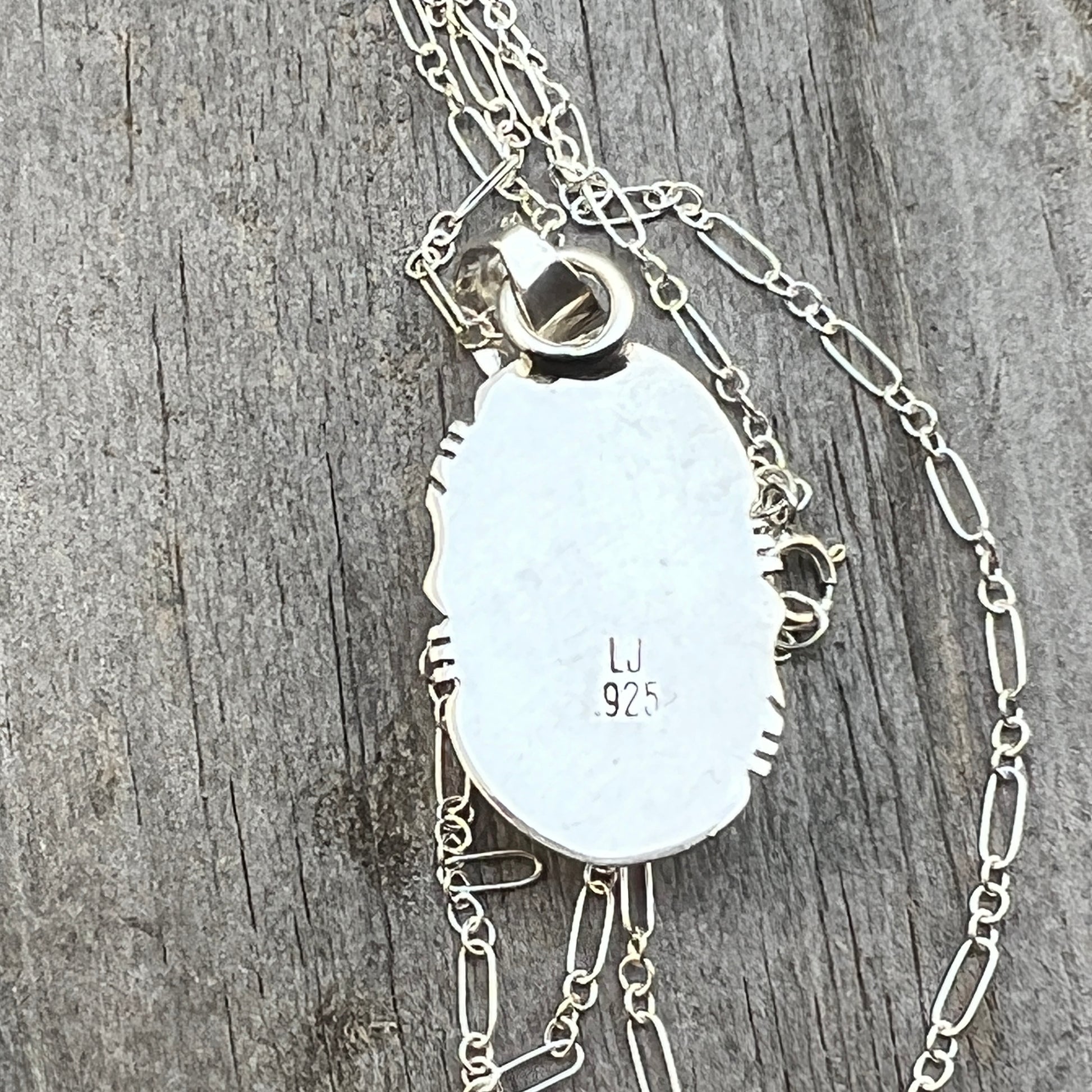 18" Sterling silver #8 Spiderweb turquoise necklace pendant Lucy Valencia Navajo 621