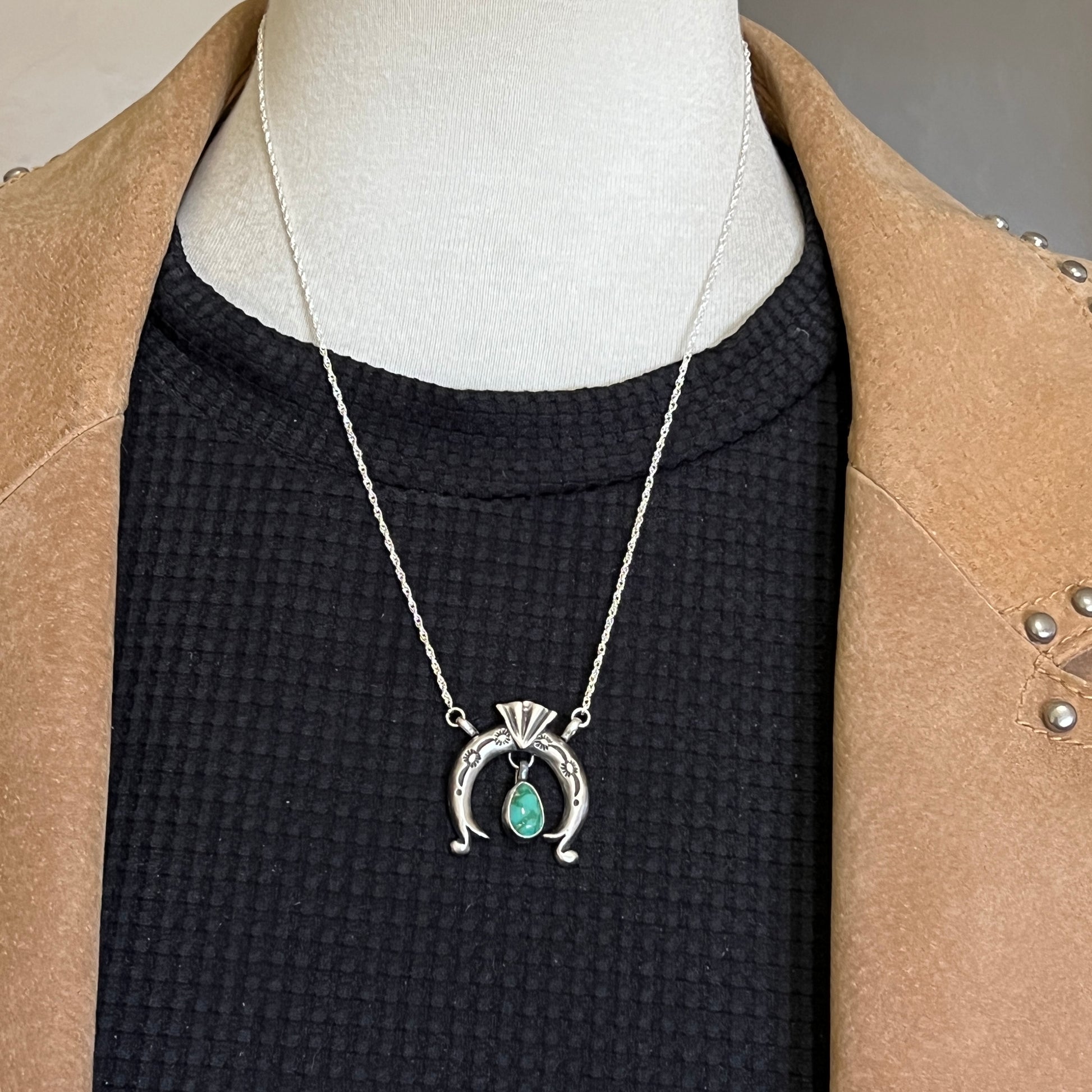 19" Sonoran Turquoise Naja Necklace Sterling silver Navajo Gary Shorty 559