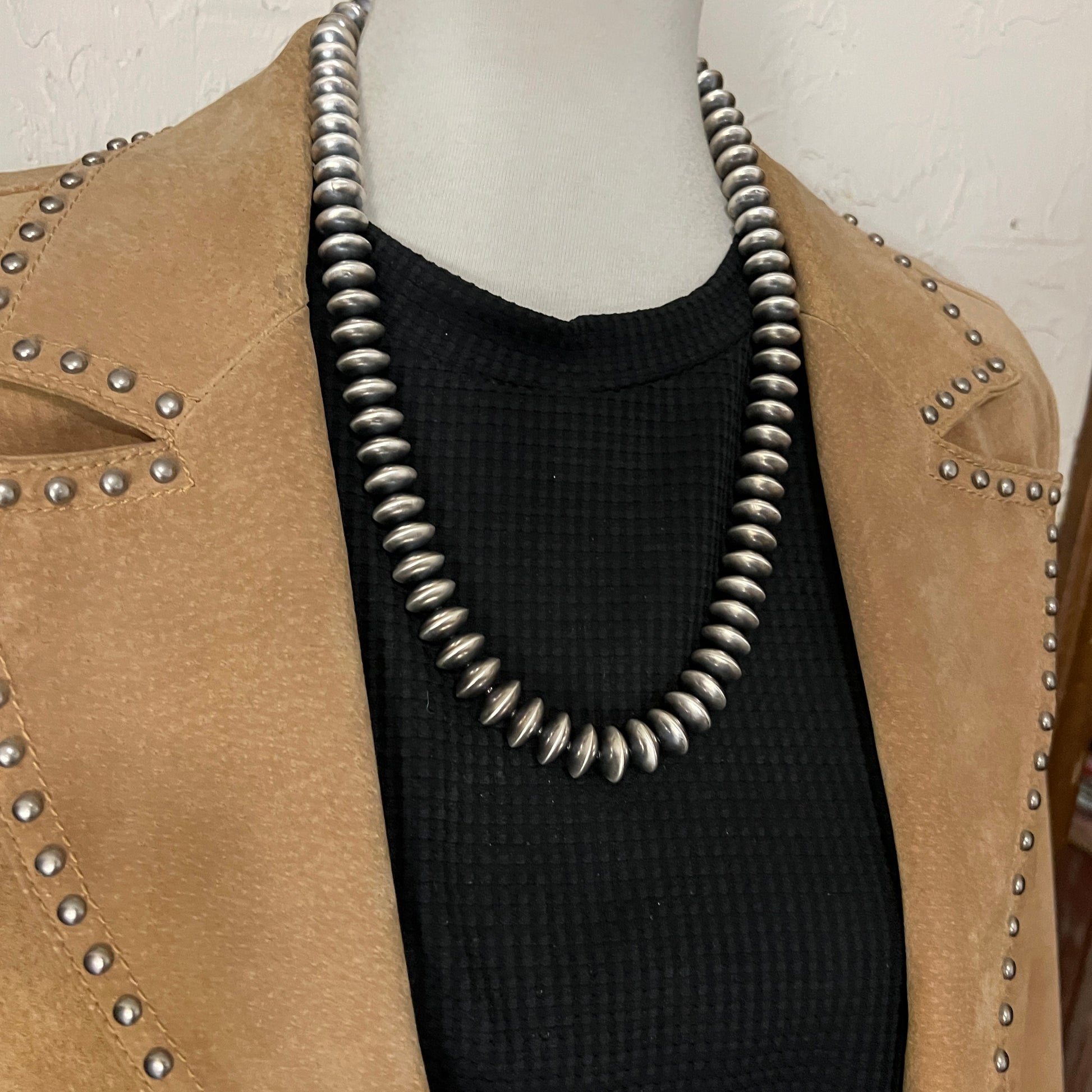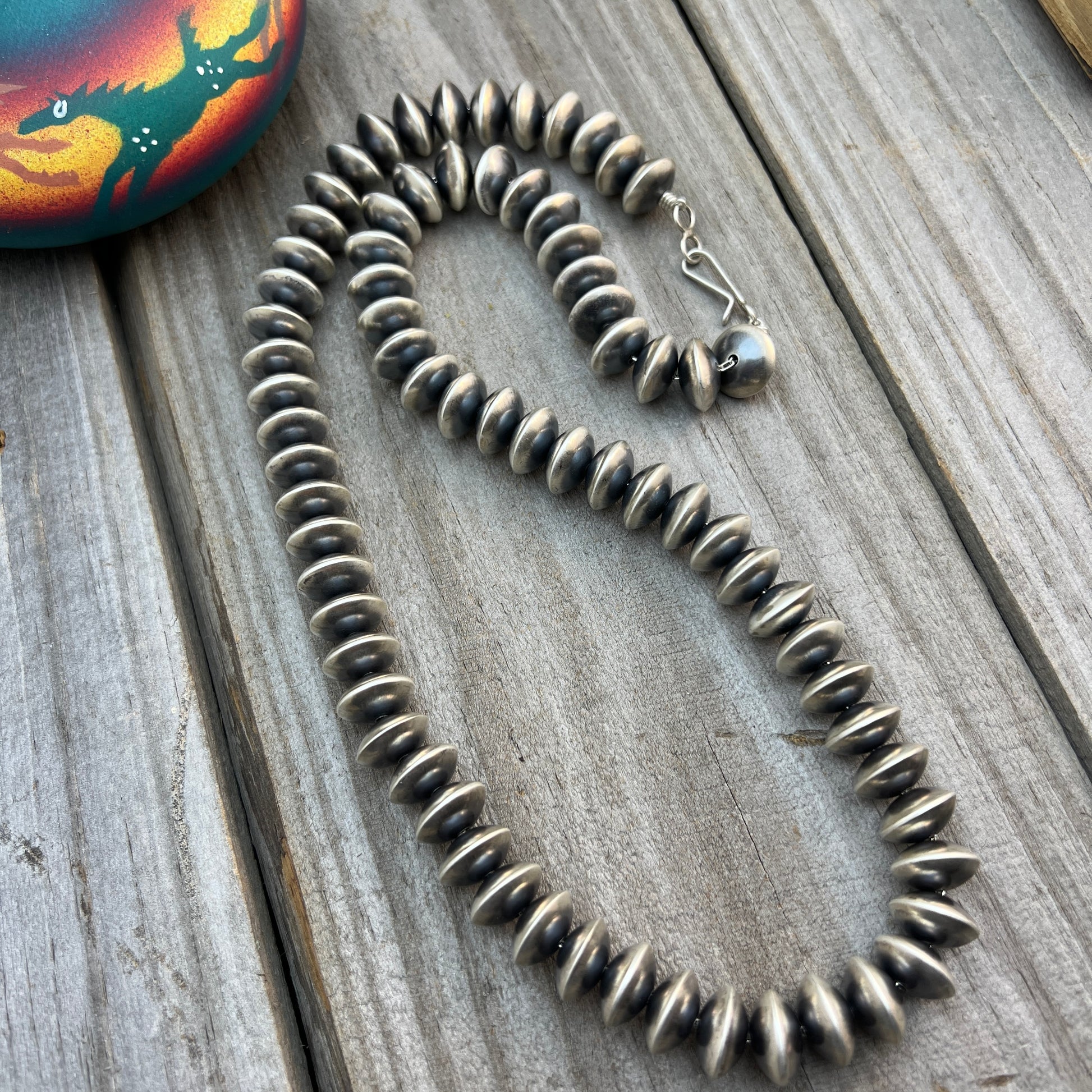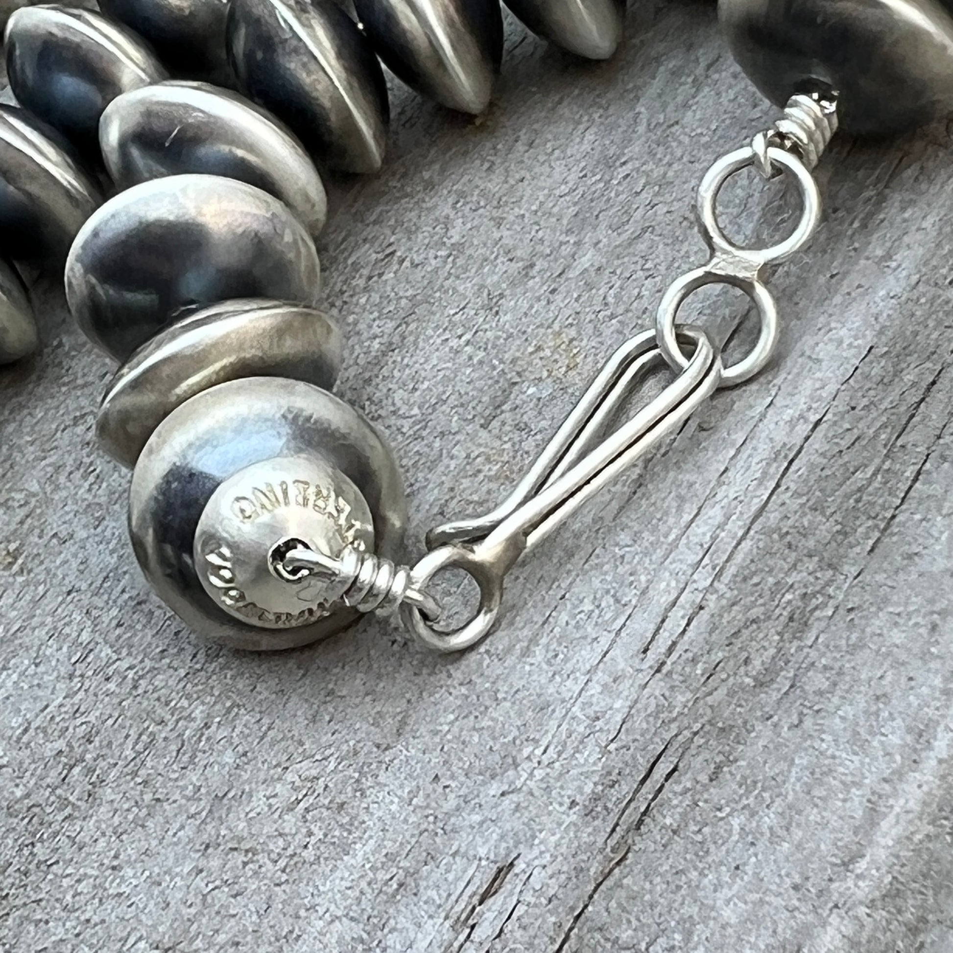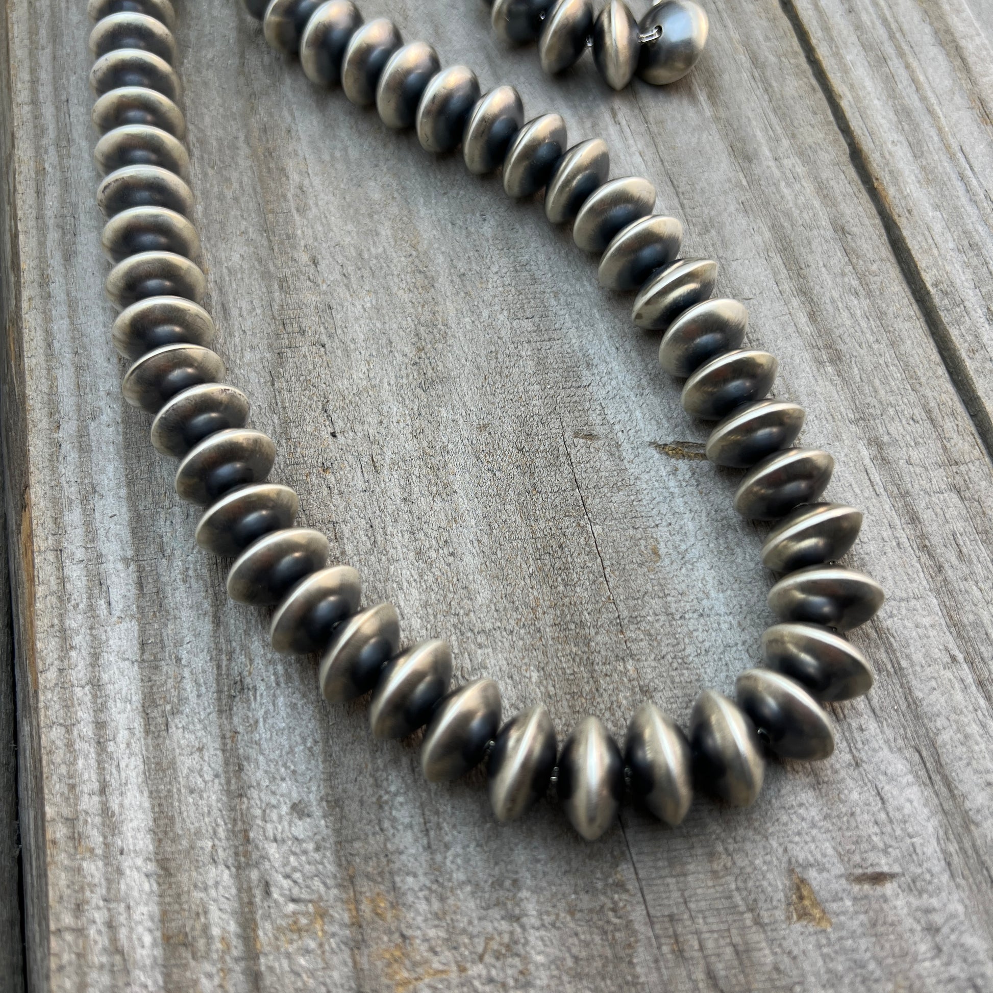 24" Navajo Handmade Sterling Silver Pearl Saucer Bead Necklace Bryannen Halwood Signed