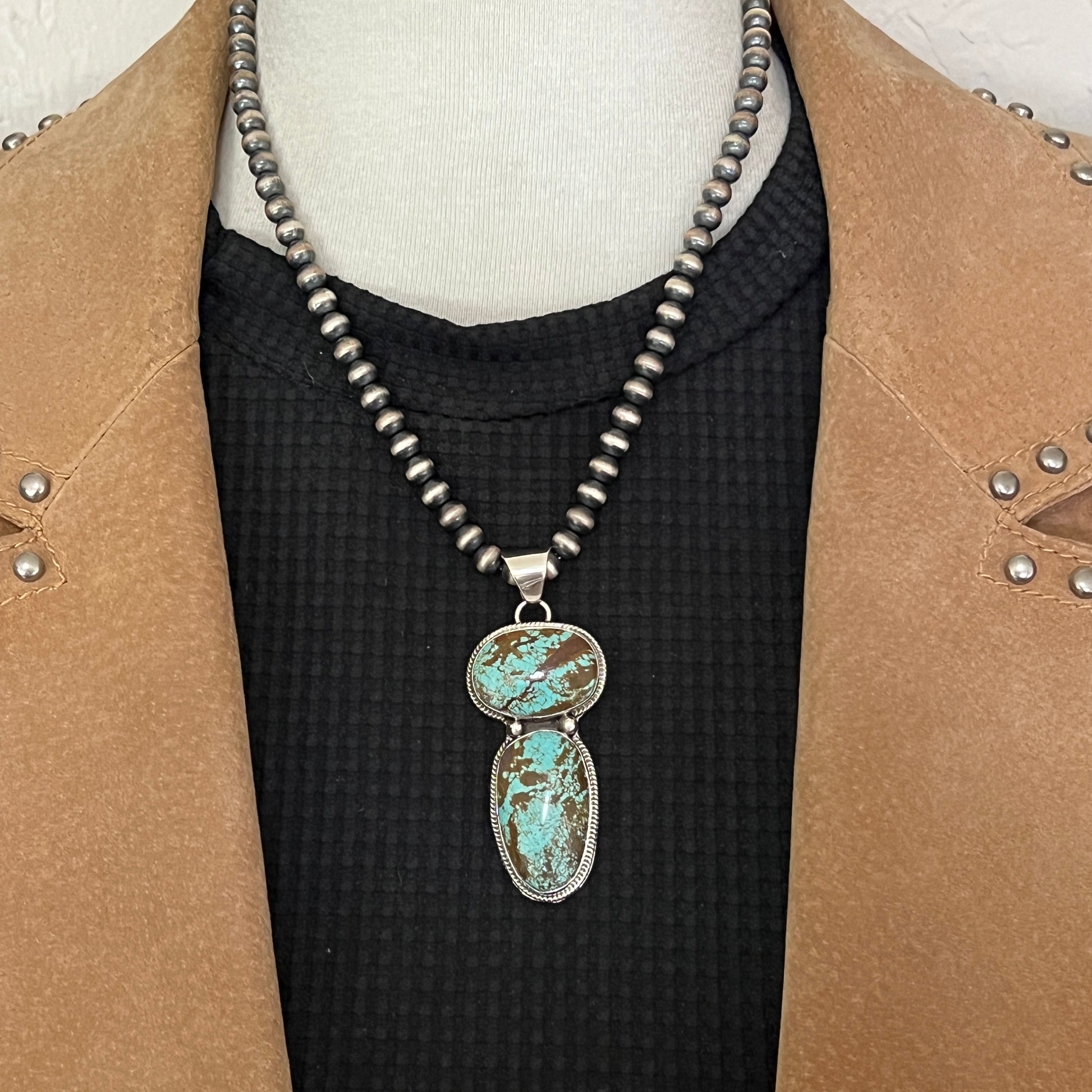 Natural #8 turquoise pendant Burt Francisco Sterling Silver Navajo Handmade 569