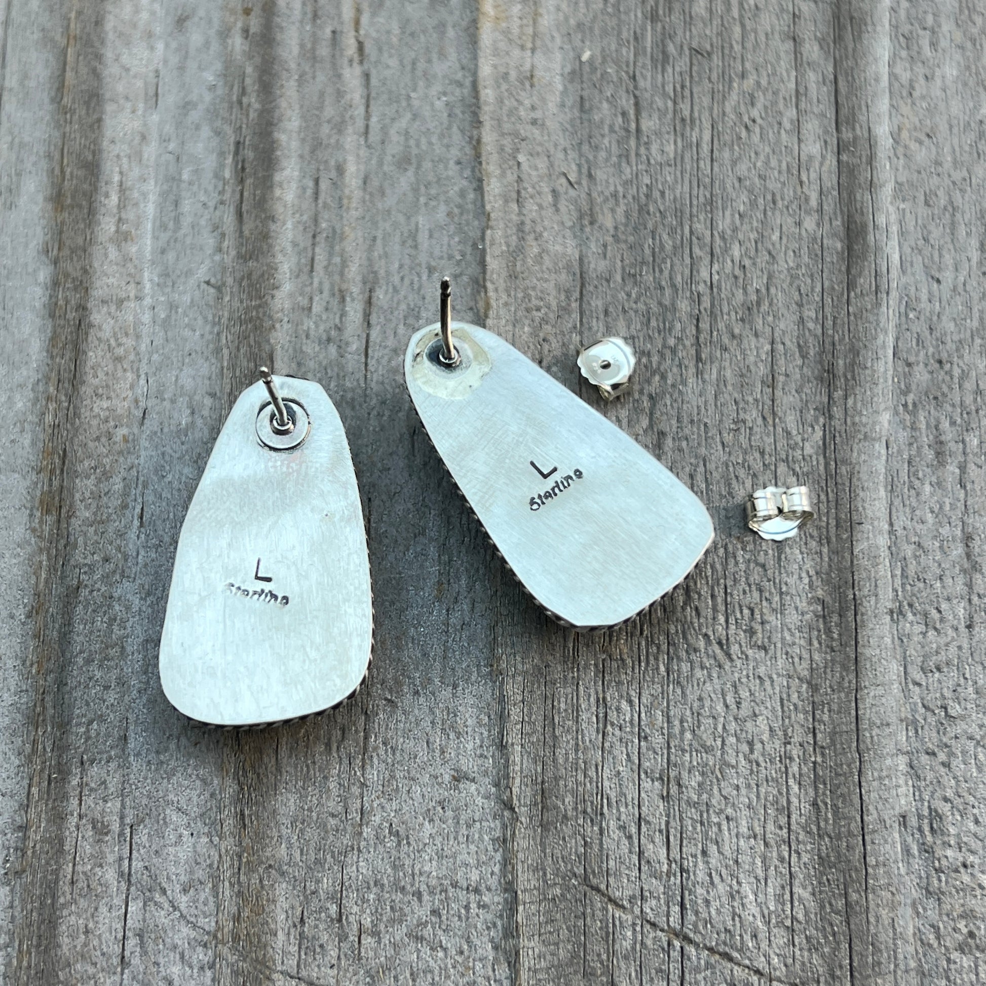 Blue Kingman Turquoise stud earrings sterling silver Trish Largo Navajo 724