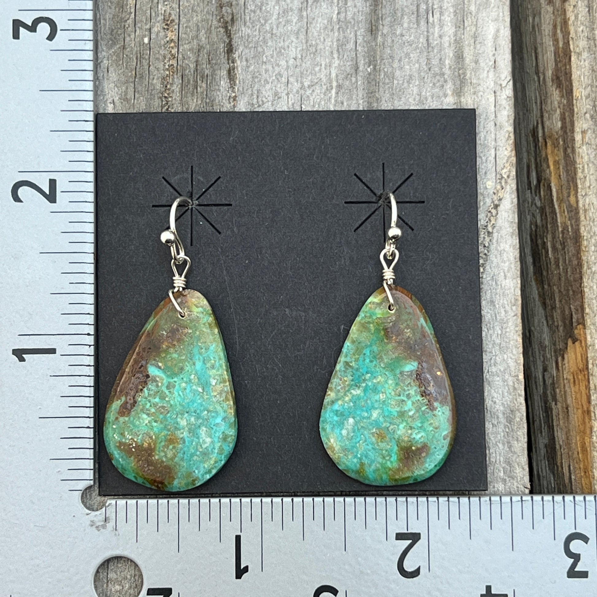 Hand cut turquoise slab earrings by Santo Domingo artist, Ronald Chavez