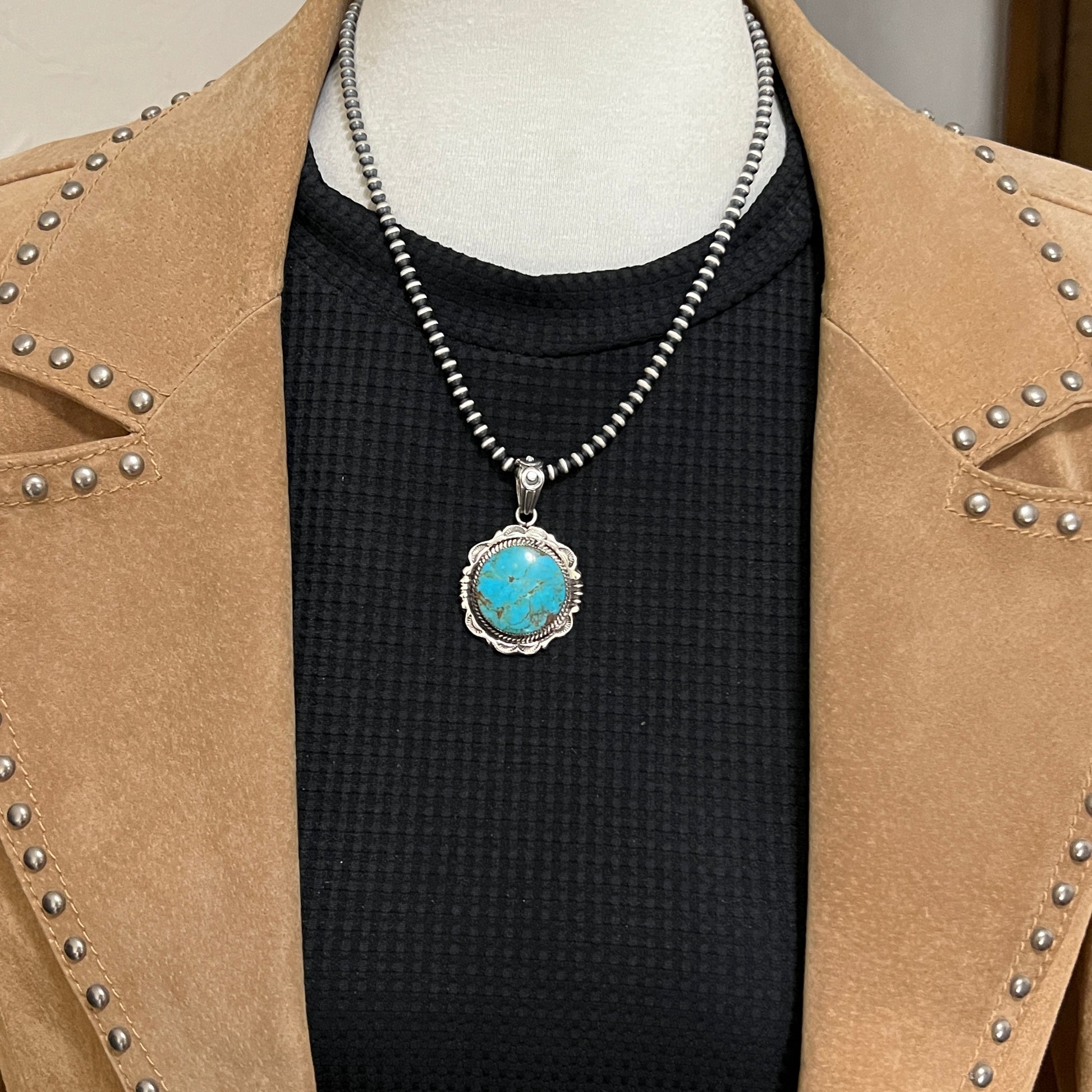 Kingman Turquoise Pendant Sterling silver Navajo handmade Jeremy Delgarito 557