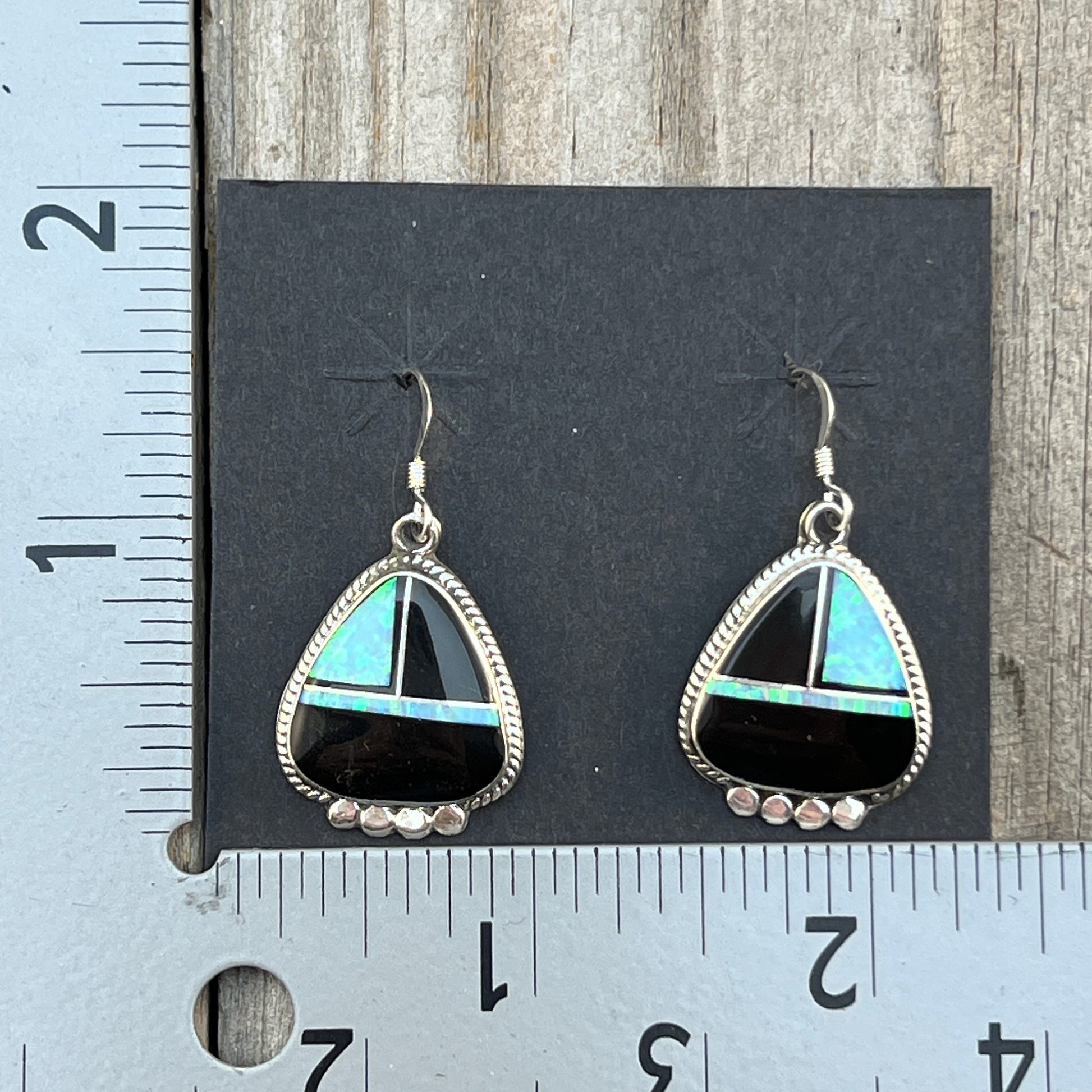 Modern Black jet opal inlay Earrings Sterling Silver James Manygoats Navajo 671