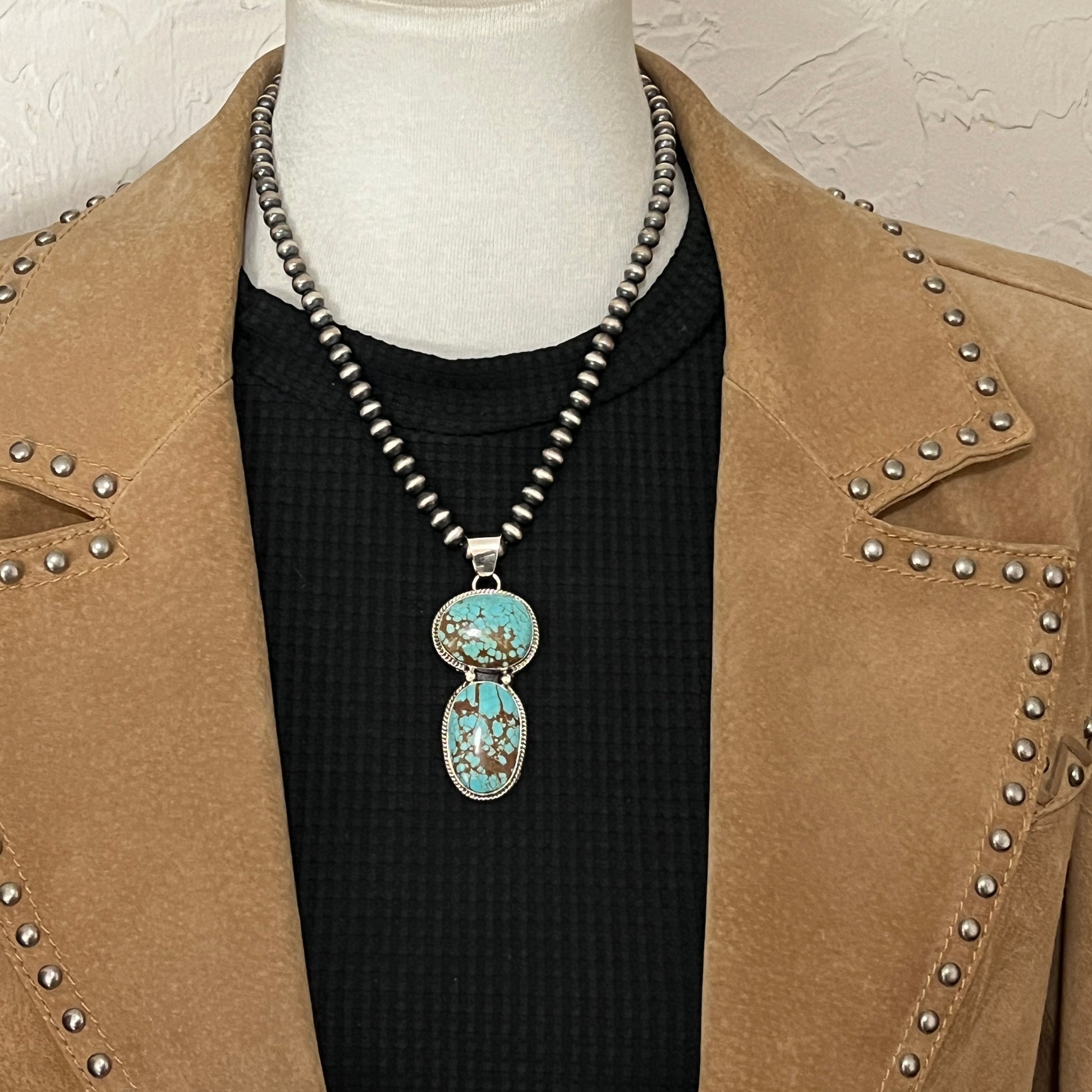 Natural #8 turquoise pendant Burt Francisco Sterling Silver Navajo Handmade 571