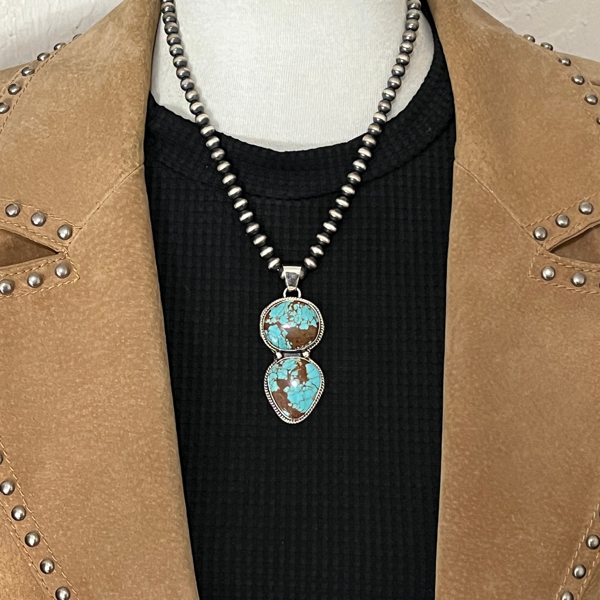 Natural #8 turquoise pendant Burt Francisco Sterling Silver Navajo Handmade 572