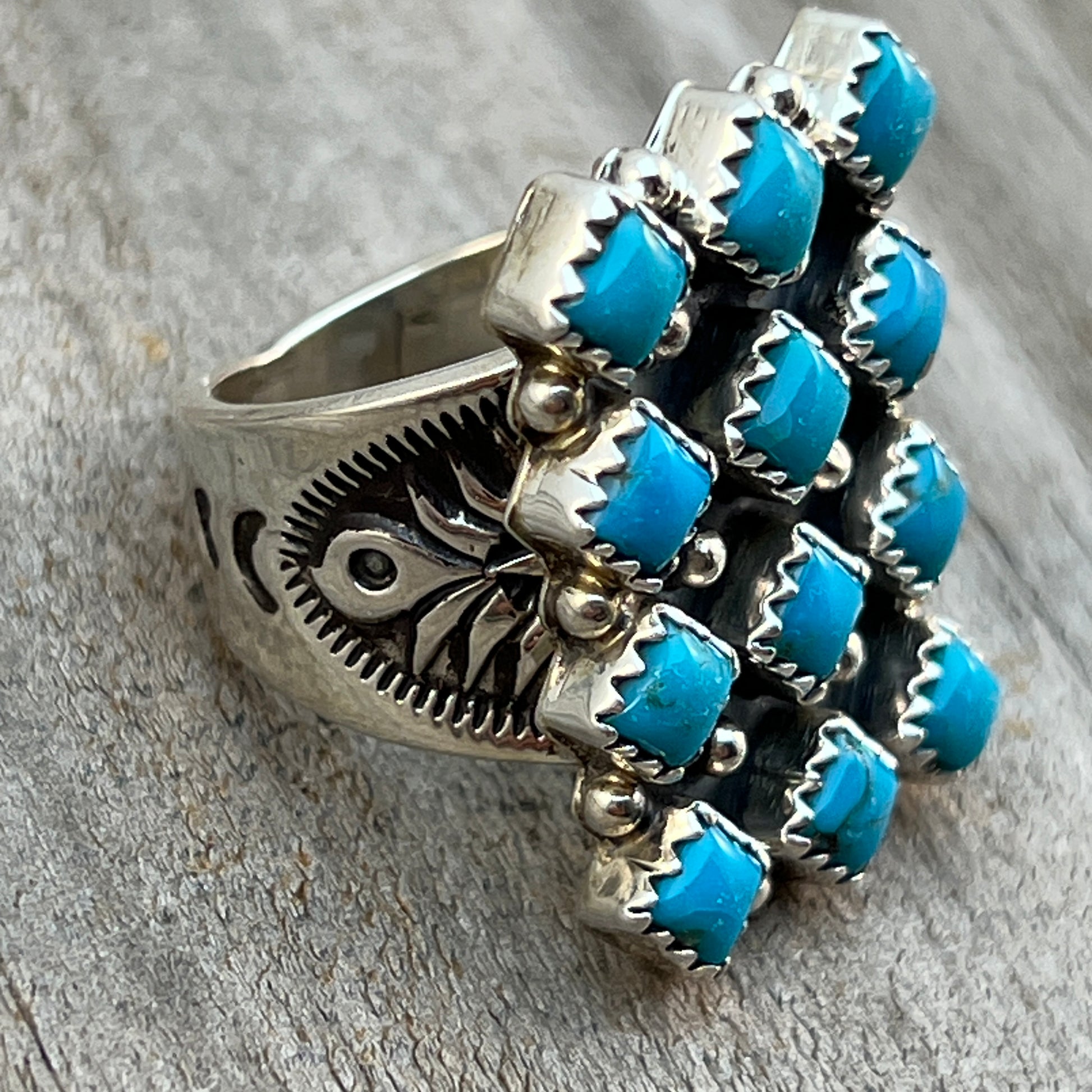 Size 6.5 Blue Kingman Turquoise Ring Sterling Silver handmade Verley Betone 545