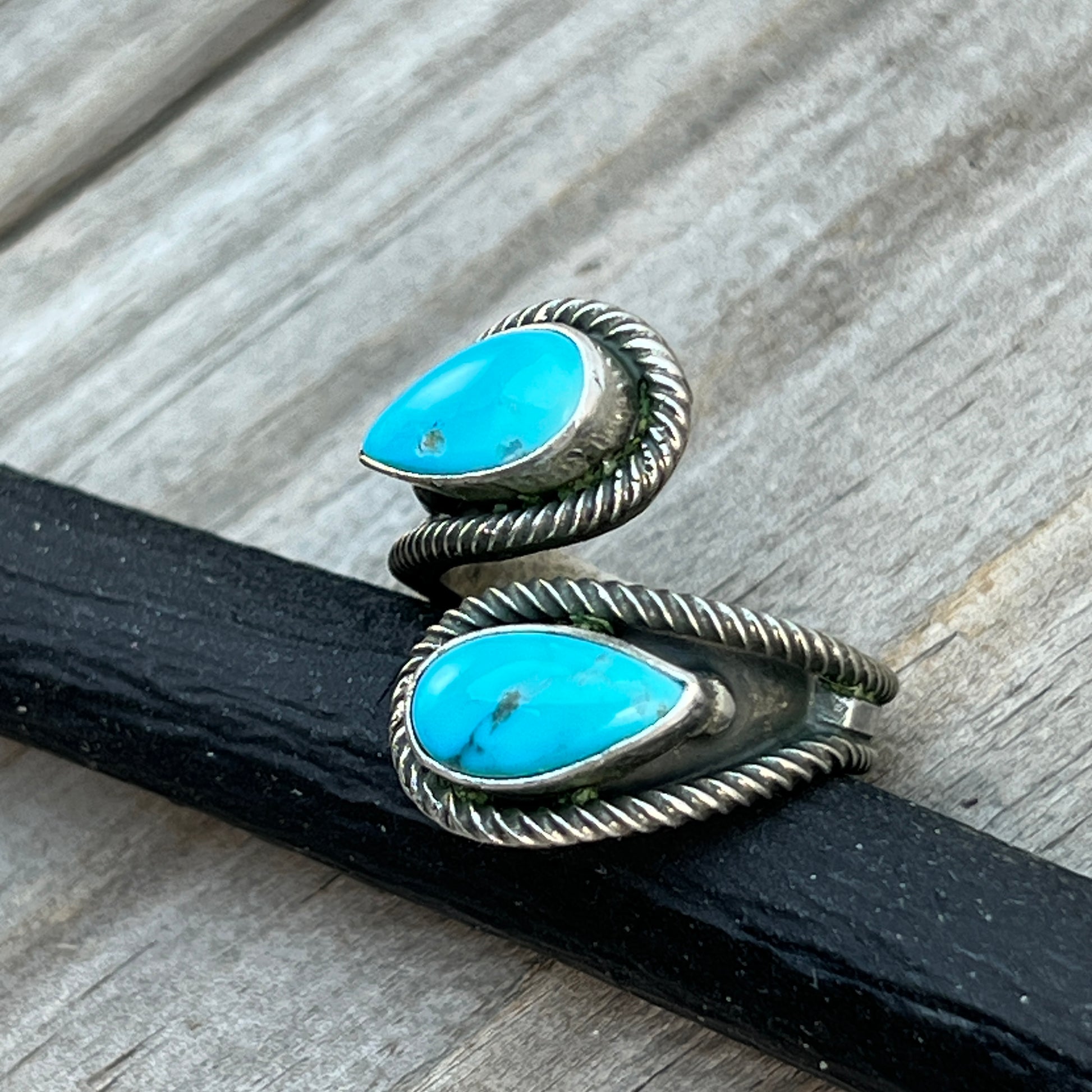 Size 8 Light Blue Turquoise Wrap Sterling Silver Ring handmade Kenny Lonjose 653
