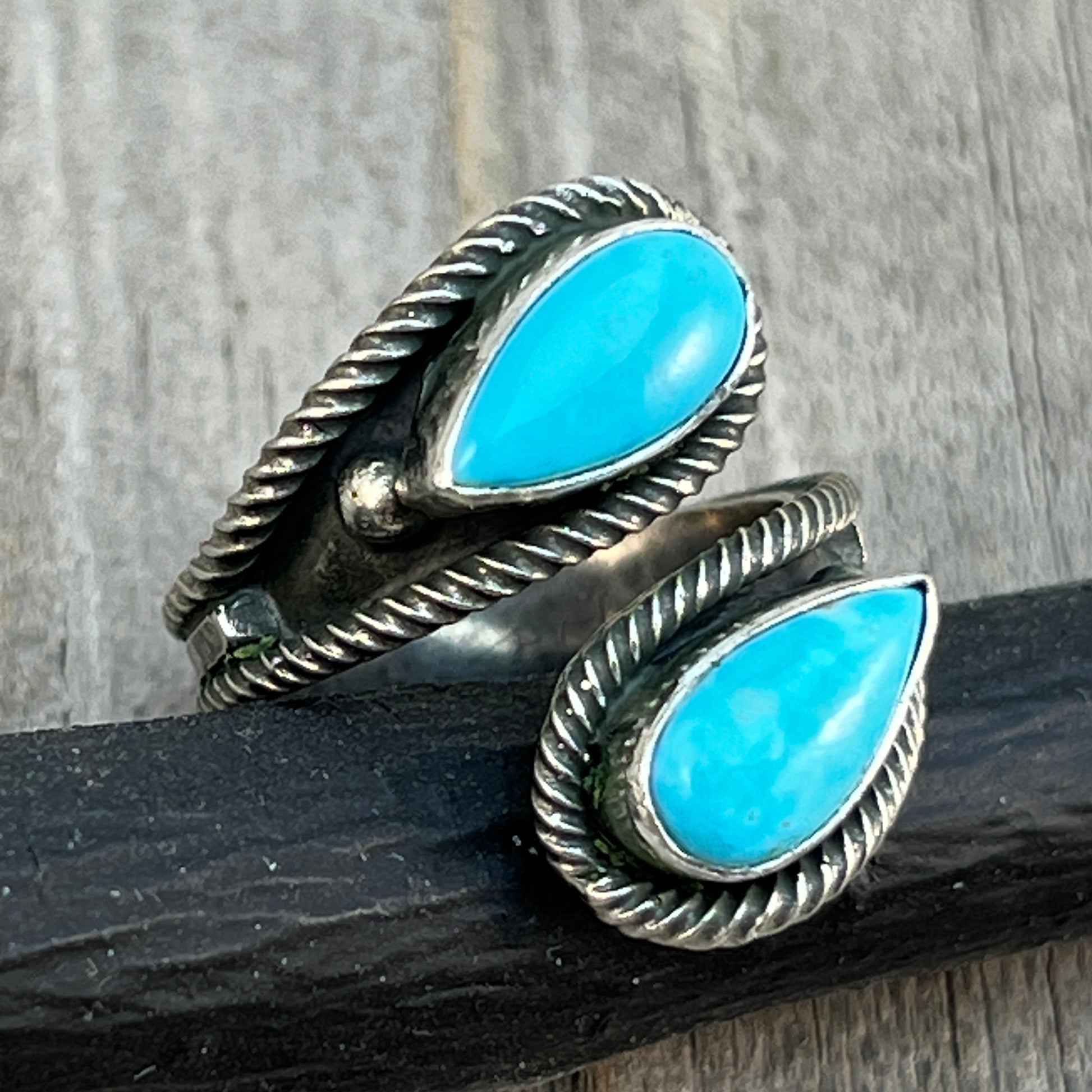 Size 7.75 Light Blue Turquoise Wrap Sterling Silver Ring handmade Kenny Lonjose 654