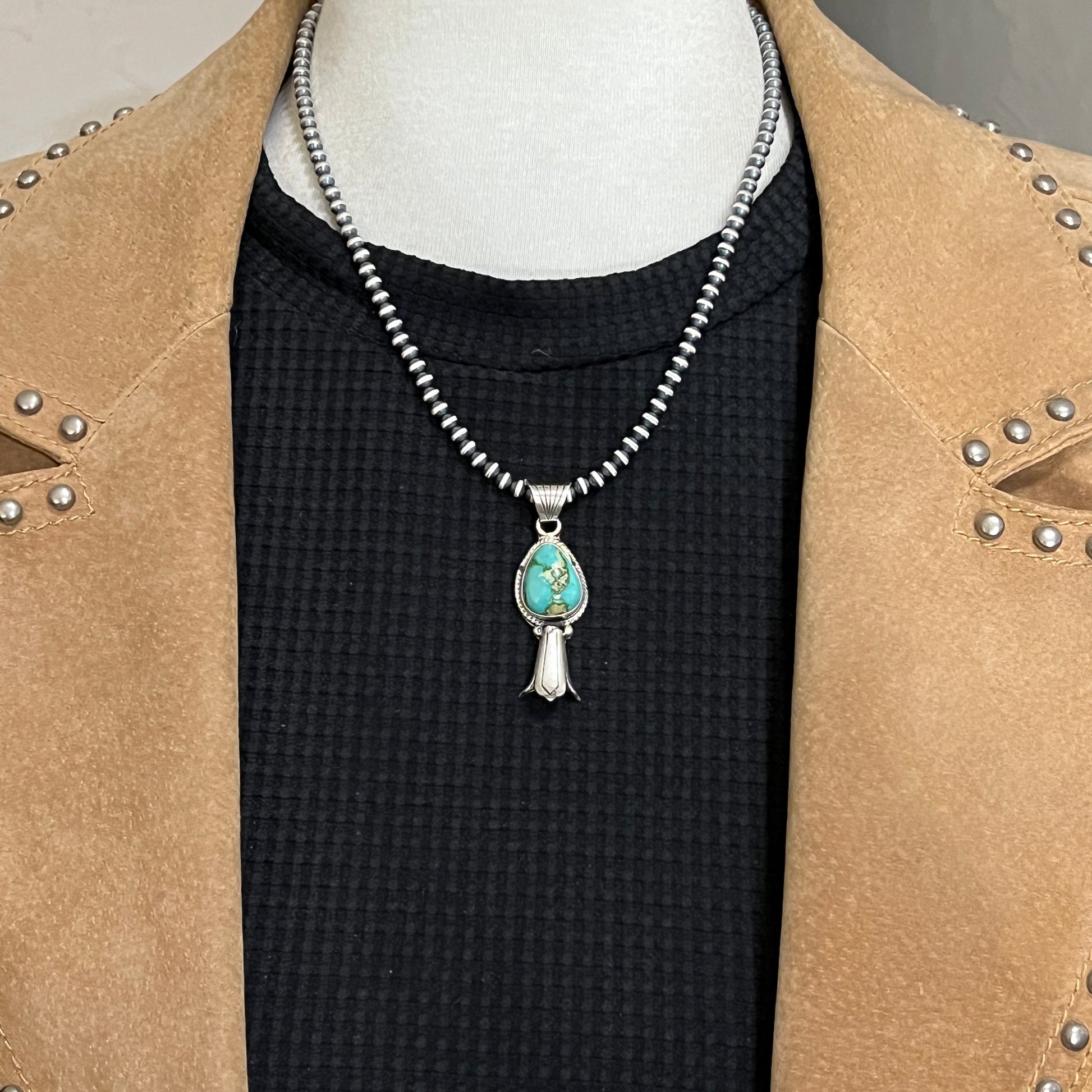 Sonoran Gold Turquoise Squash Blossom Pendant Adrienne Gordon Sterling Silver 498