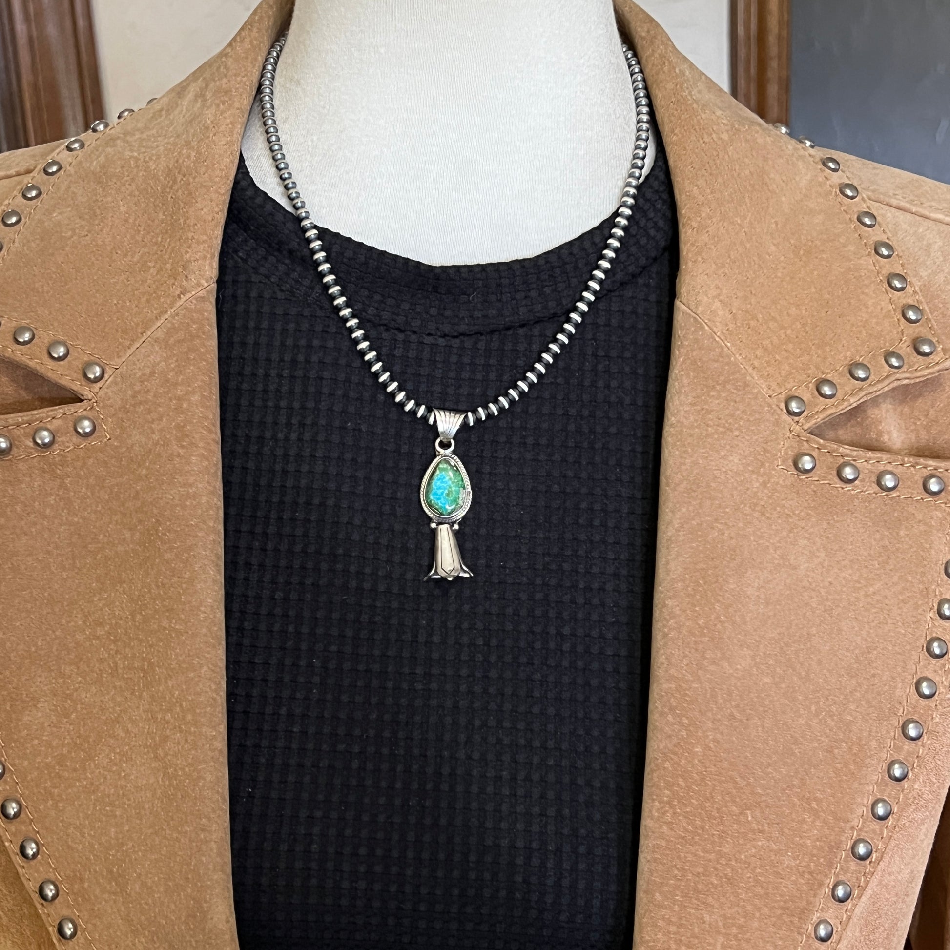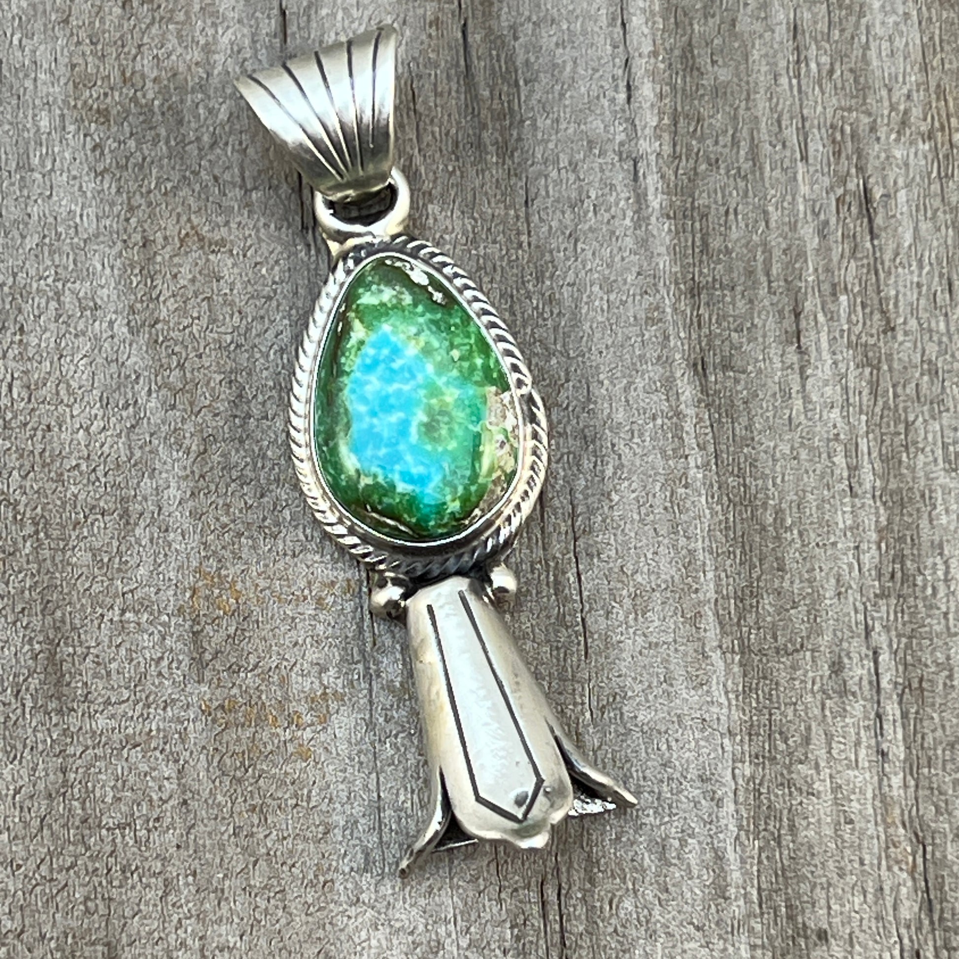 Sonoran Gold Turquoise Squash Blossom Pendant Adrienne Gordon Sterling Silver 506