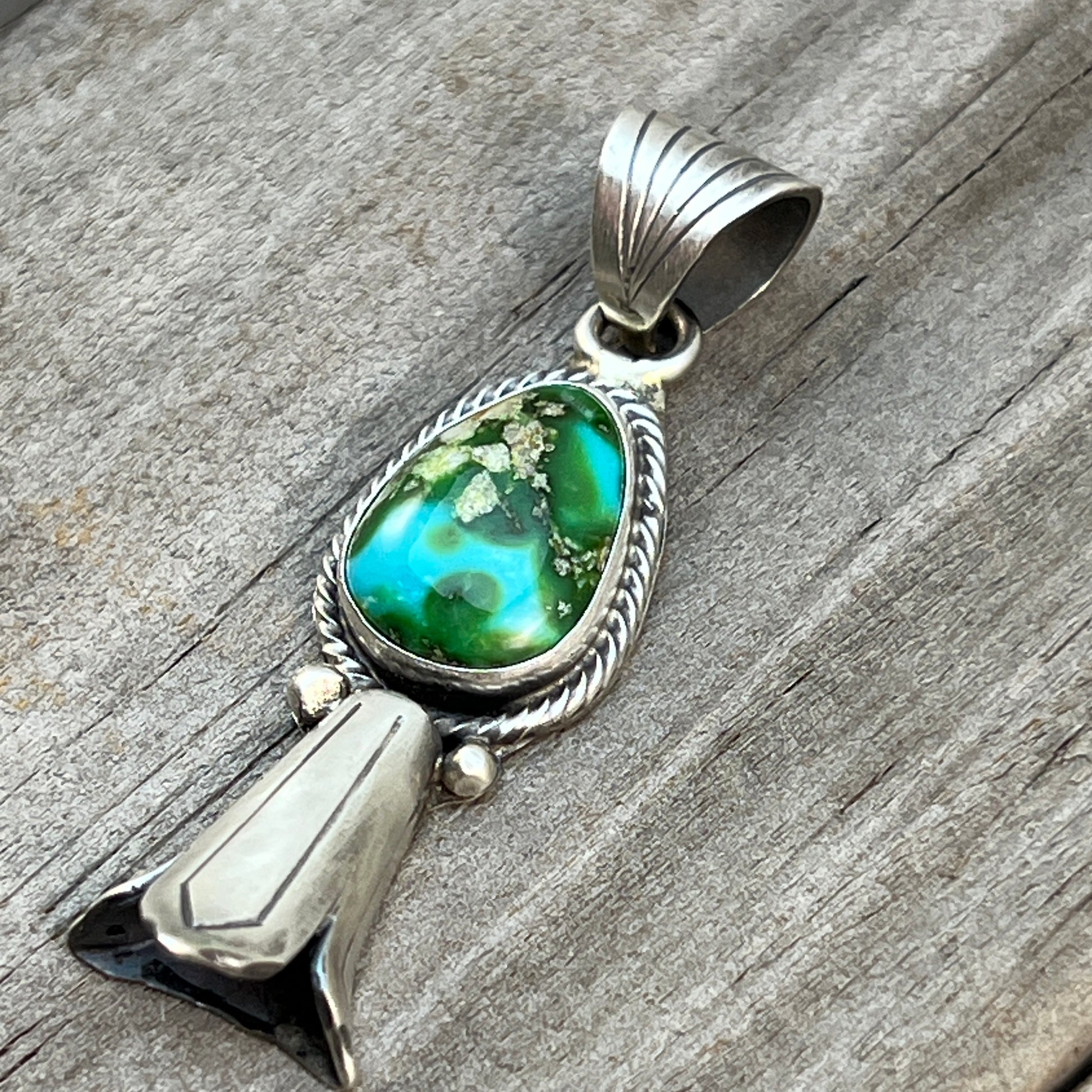 Sonoran Gold Turquoise Squash Blossom Pendant Adrienne Gordon Sterling Silver 600