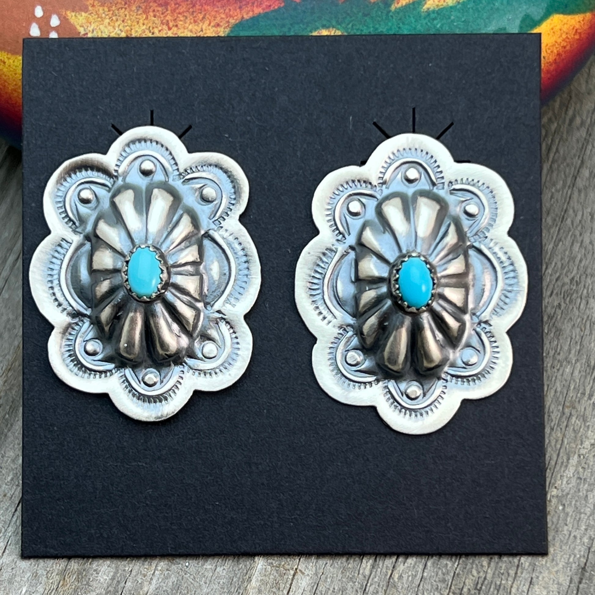 Turquoise stamped concho earrings sterling silver Lavina Benally Navajo 712
