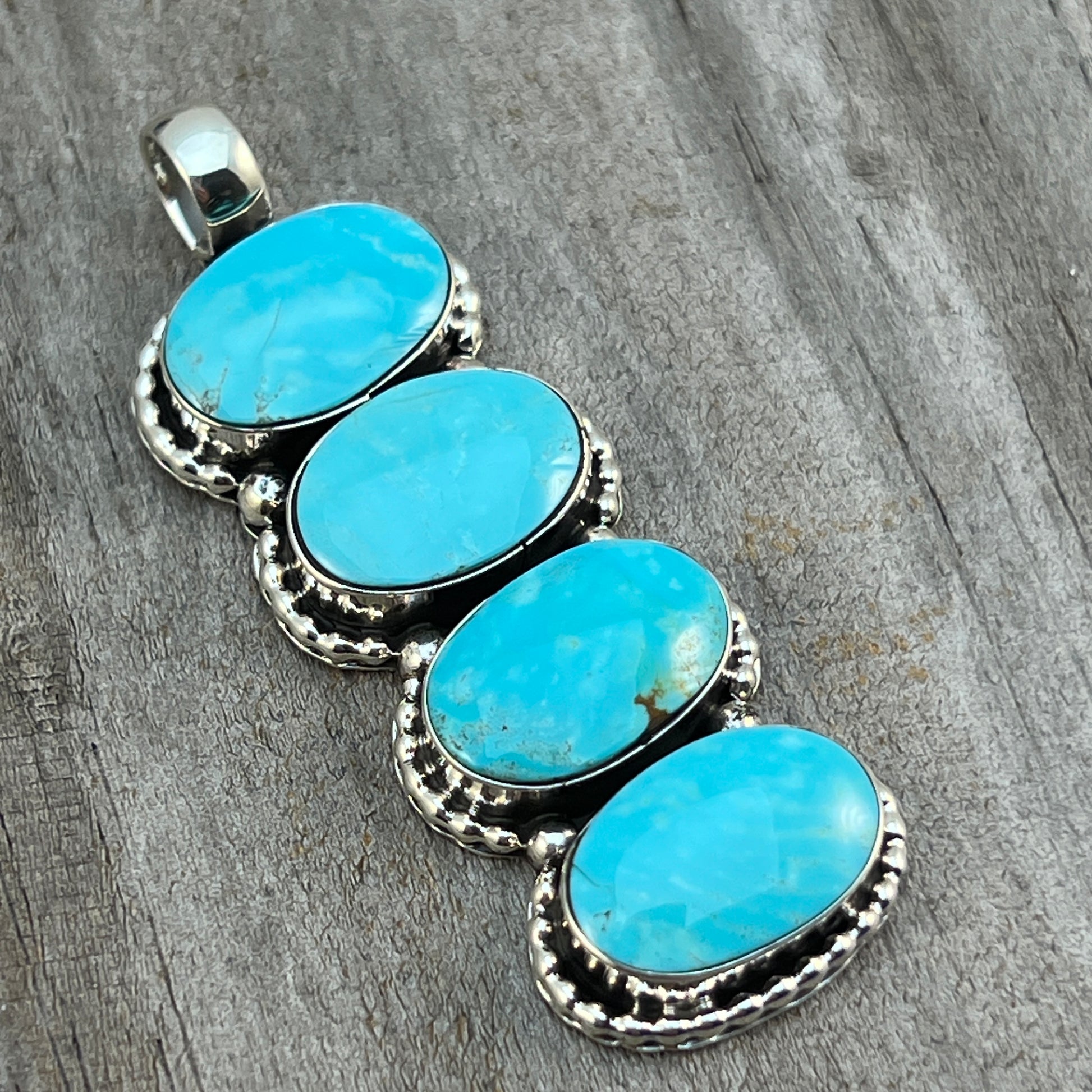 Turquoise vertical bar Pendant Sterling silver Navajo handmade Marie Bahe 535