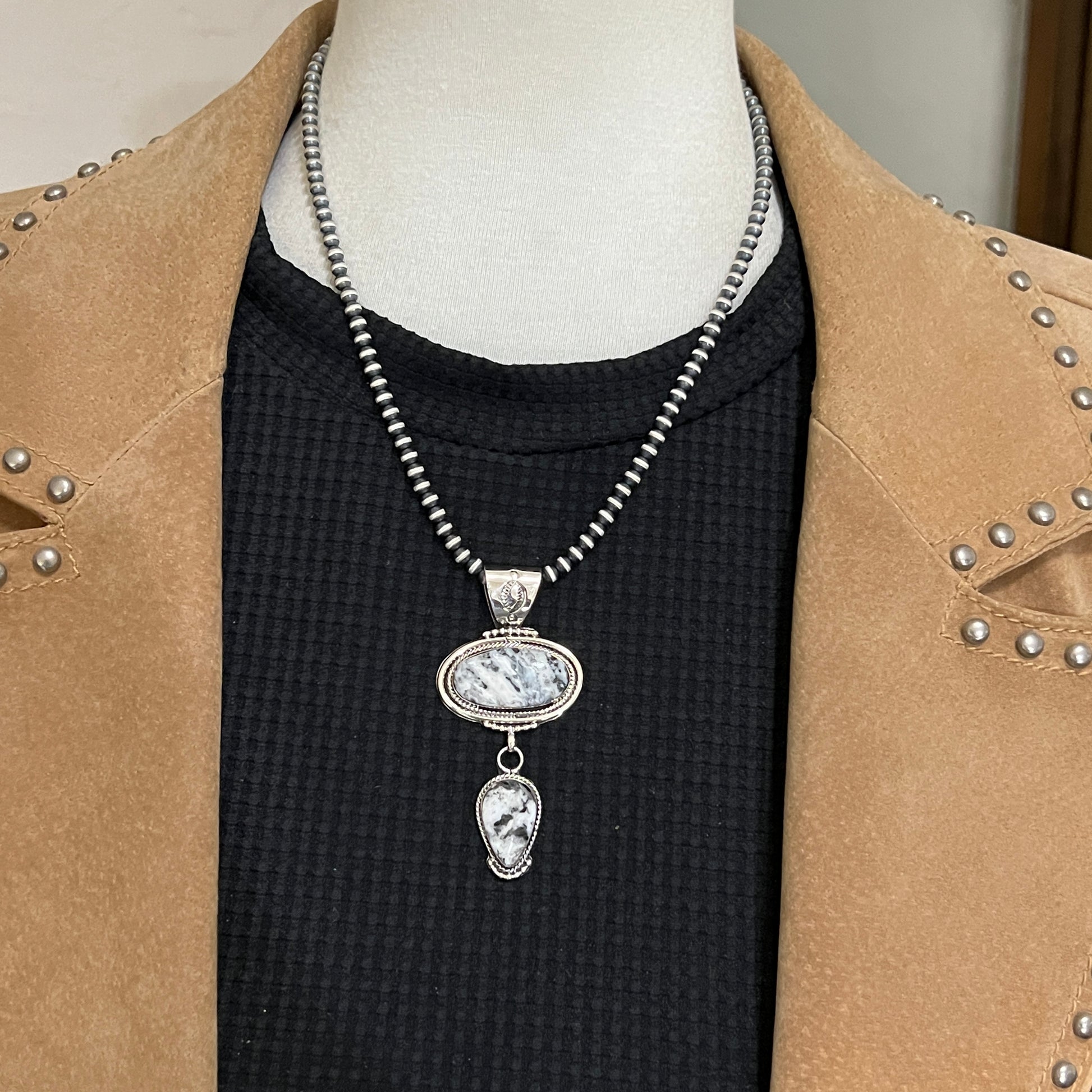 White Buffalo Pendant Sterling silver Navajo Handmade Mike Smith 524